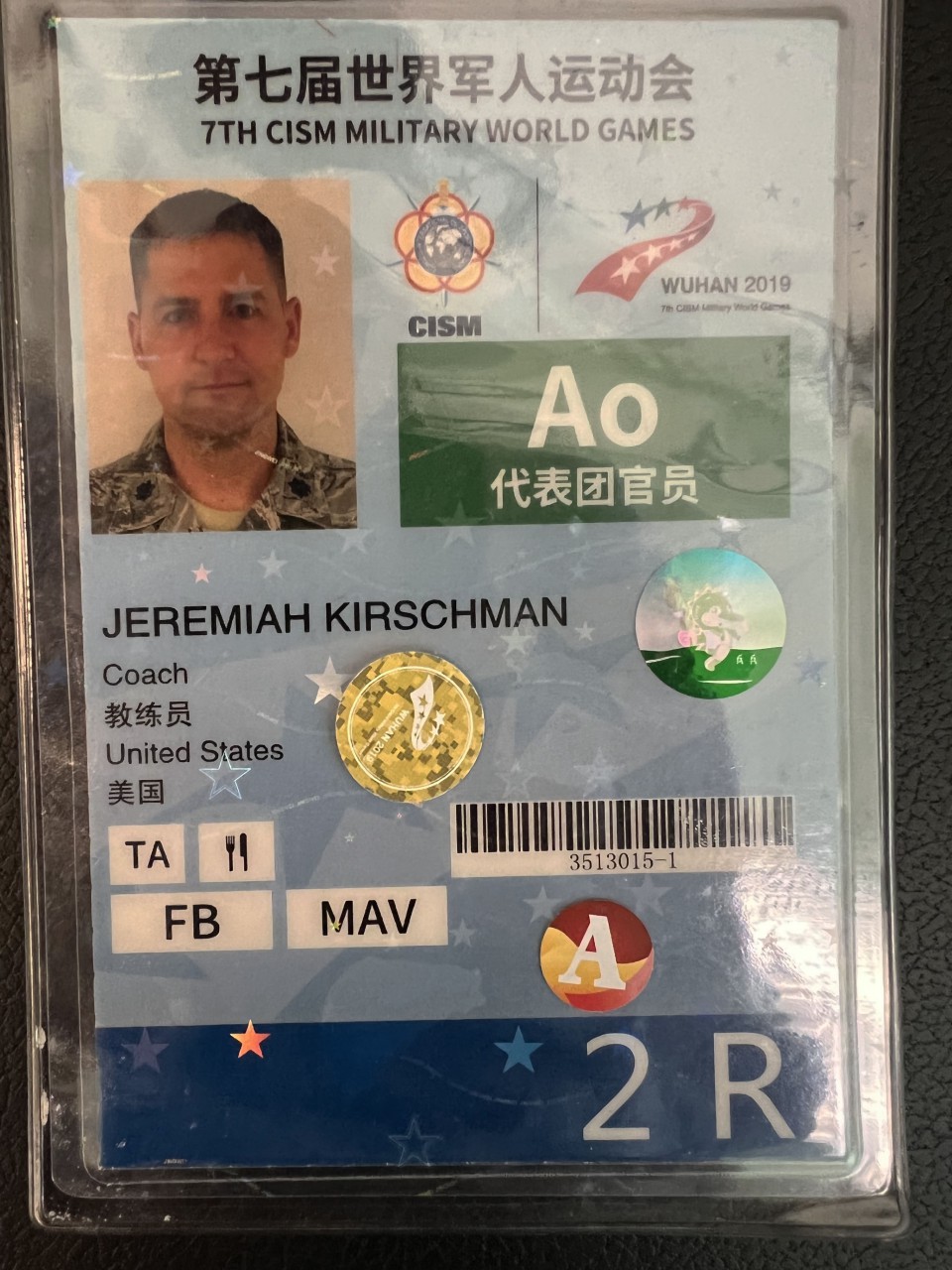 2019 Wuhan ID Card - He's Head Coach for the US Men's Team